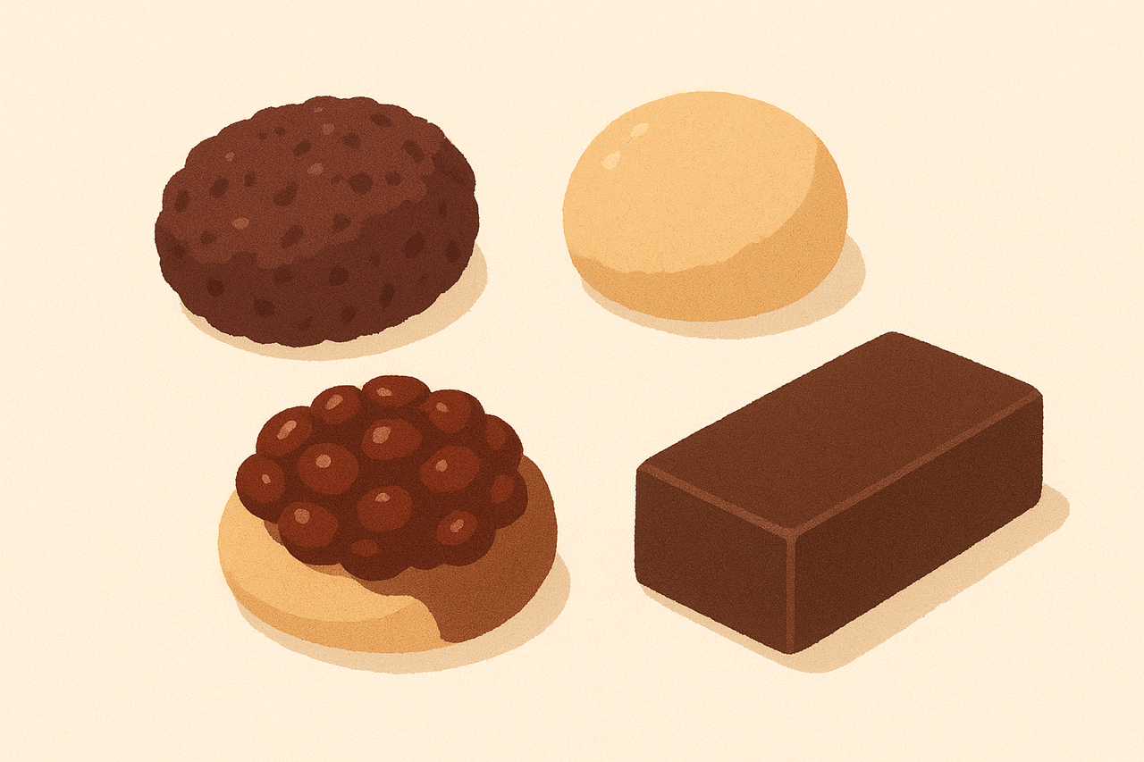 店内には、毎日手作りされる おはぎ、カラフルで手土産にも喜ばれる ひとくち羊羹、風味豊かな 甘納豆、料理にも使いやすい 真空パックのあんこ など、あんこの魅力がぎゅっと詰まった商品が並びます。