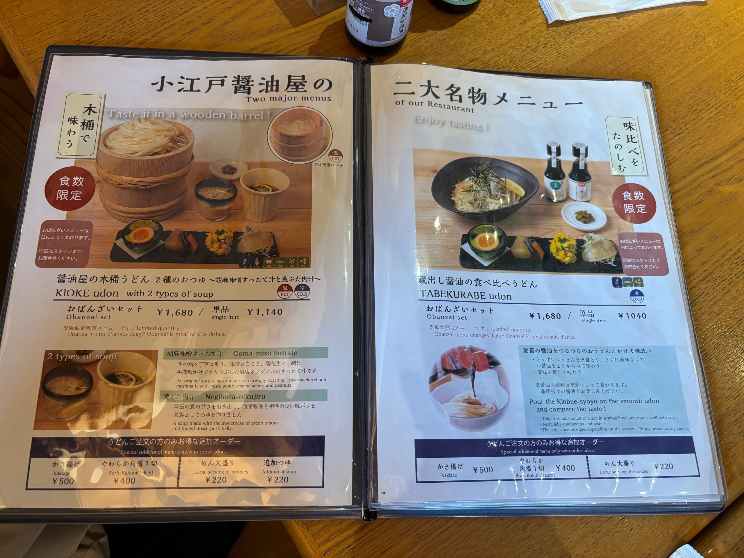 看板メニューの「金笛うどん」や「しょうゆソフトクリーム」